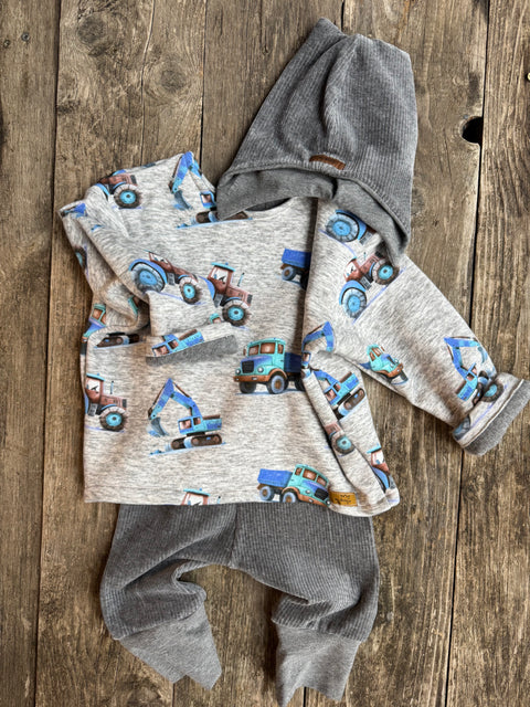Limited Edition: süßer Kinderpullover ausAlpenfleece mit Baufahrzeug Muster