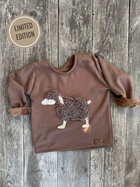 Limited Edition: süßer Kinderpullover aus Fleece mit appliziertem Schäfchen.