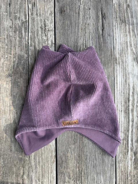 Ultraweiche Kindermütze in Cordoptik in der Farbe mauve.