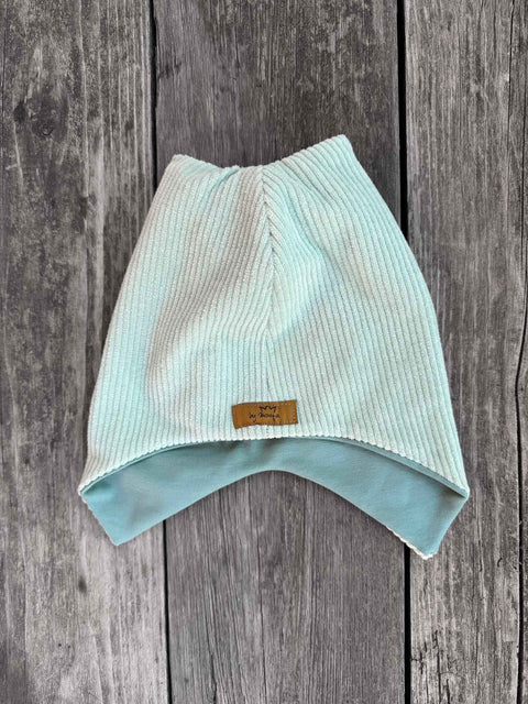 Meine Mützen haben einen perfekten Schnitt und die ideale Passform. Die Ohren bleiben schön bedeckt und die drei Zipfel sorgen dafür, dass sich die Mütze angenehm an den Kopf anschmiegt. Der Schnitt ist mein eigener Entwurf seit 1995.