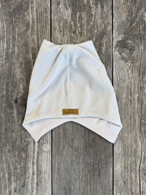 Ultraweiche Kindermütze in Cordoptik in der Farbe sand.