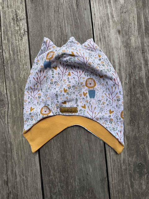Die neue Mütze LÖWE SENF mit dem senfgelben Innenstoff passt zu den angesagten Farben.