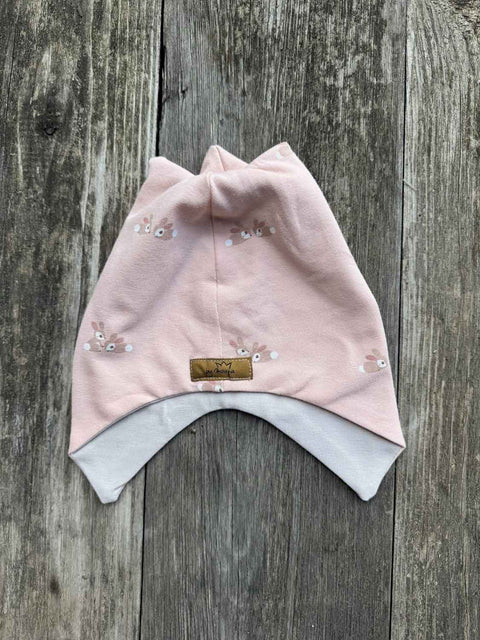 Perfekt fürs Frühjahr - apricot Mütze mit kleinen Häschen.