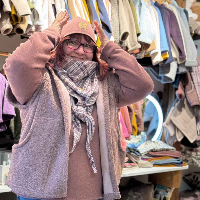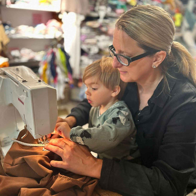 Bianca ist seit fünf Jahren fester Teil meines Teams und aus dem Laden nicht mehr wegzudenken. Sie ist die, die überall mit anpackt: vom Bügeln über das Beantworten von Mails bis hin zum Aufräumen und Organisieren. Alles, was im Laden erledigt werden muss, macht sie mit Ruhe, Zuverlässigkeit und Herzblut. Nur an die Nähmaschine geht sie nicht. Bianca ist die gute Seele im Hintergrund, die dafür sorgt, dass alles rund läuft.